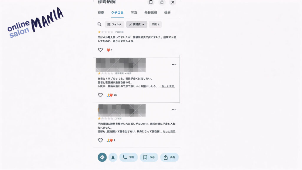 しかし、悪い口コミによって、Googleマップのようなサイトに誤った情報が掲載されてしまうと、影響が大きく無視できなくなります。