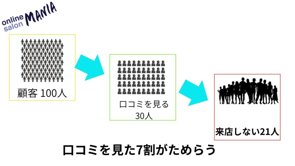 つまり、口コミをみて来店する顧客が全体の3割いますが、そのうちの7割は悪い口コミで来店しないということになります。